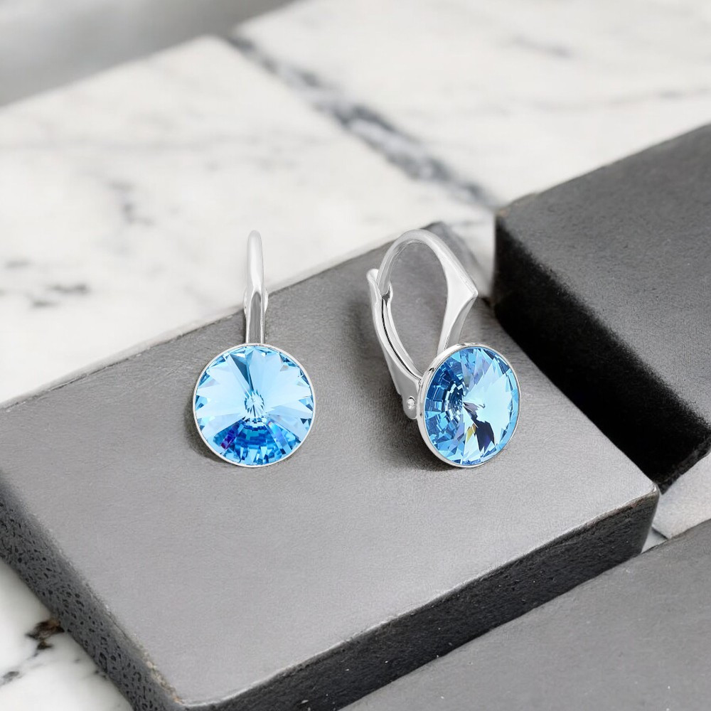 Les boucles d'oreilles classiques en argent avec cristaux bleu claire ont un design élégant et intemporel.