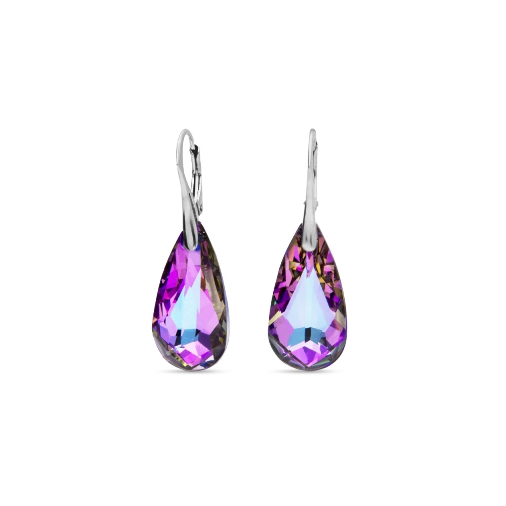 Boucles d'oreille en argent 925 rhodié ornées de cristaux de couleur Vitrail Light.Longueur des boucles d'oreille: 2 cm.