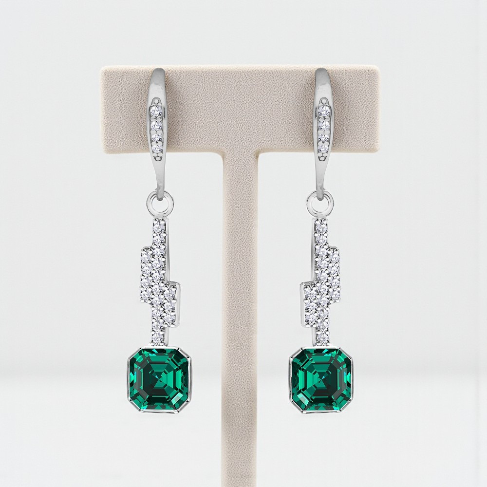 Chaque cristal Swarovski® vert révèle une intensité luxueuse, offrant un reflet vibrant qui illumine le visage à chaque mouvement. Le serti délicat et la silhouette allongée de 32 mm allient finesse et impact visuel, faisant de GEOMETRIC une pièce idéale pour celles qui aiment les bijoux uniques, contemporains et raffinés.
