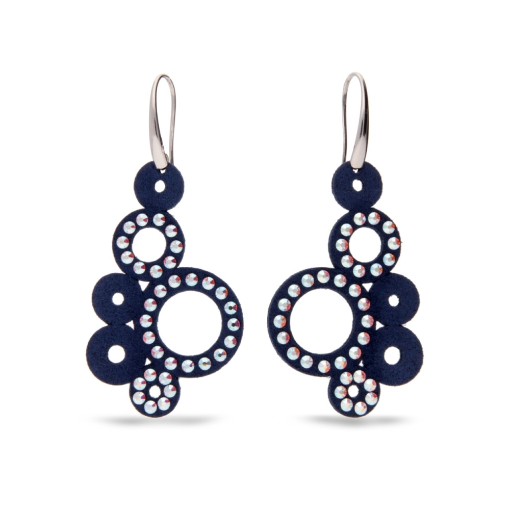Bracelet en Alcantara® bleu marine orné de cristaux de couleur Aurora Borealis.Longueur du bracelet: 18.5 cm.Largeur du bracelet: 4.3 cm.