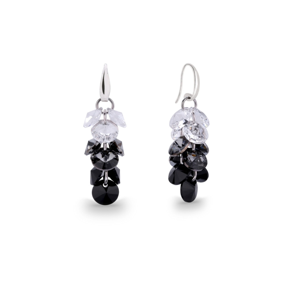 Collier en argent 925 rhodié orné de cristaux de couleur Crystal, Silver Night et Jet.Longueur de chaîne: 61 cm (réglable). Longueur du pendentif: 6 cm.