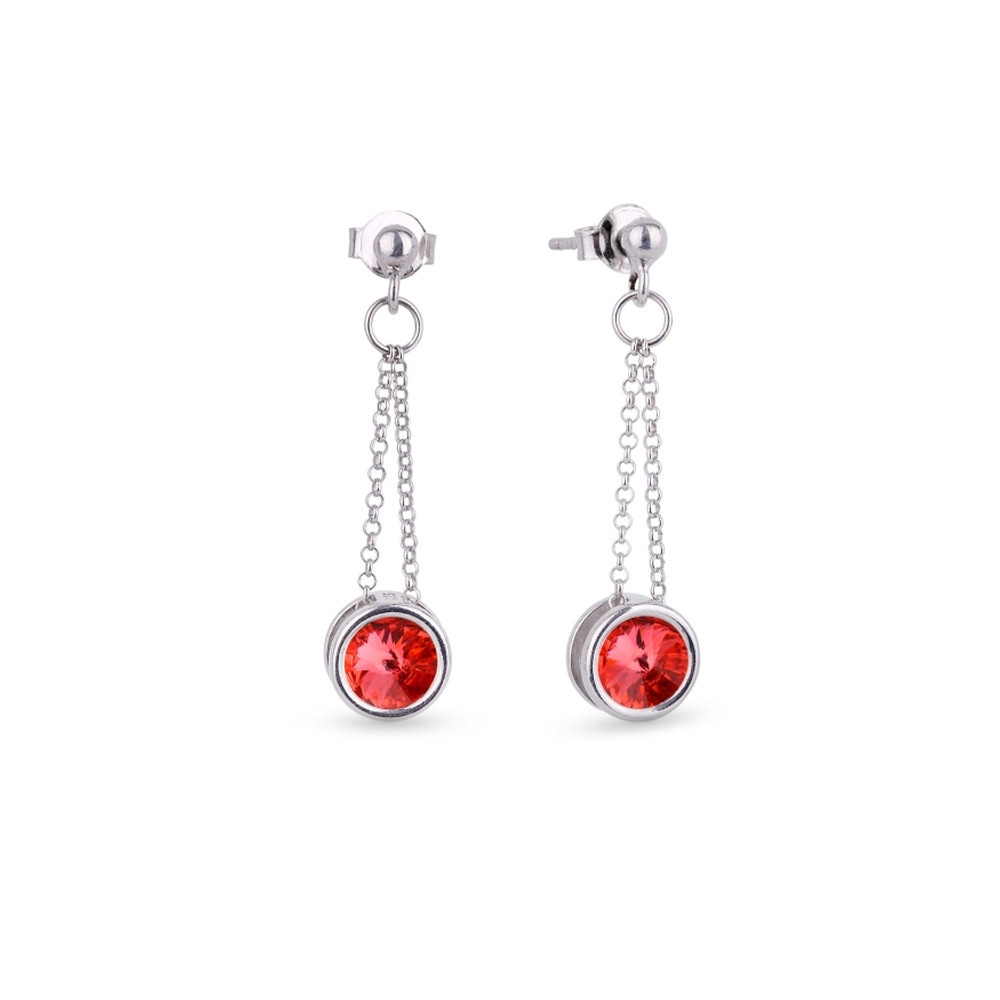 Boucles d'oreille en argent 925 rhodié ornées de cristaux de couleur Golden Shadow et Padparadscha.Longueur des boucles d'oreille: 3.8 cm.