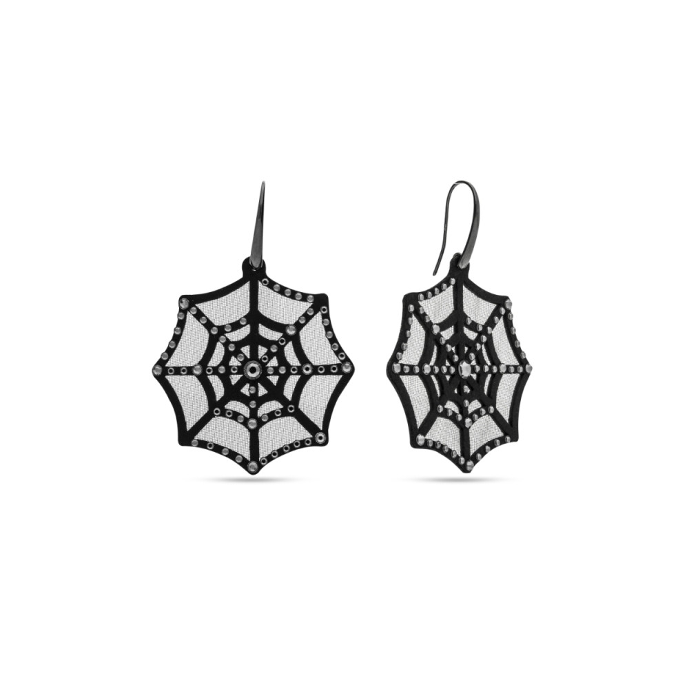 Collier en Alcantara® noir, organza et argent 925 rhodié orné de cristaux de couleur Silver Night.Longueur de chaîne: 47 cm (42 cm + 5 cm extension).Longueur du pendentif: 6.5 cm.