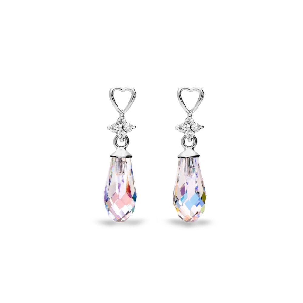 Collier en argent 925 rhodié orné de cristaux de couleur Aurora Borealis.Longueur de chaîne: 47 cm (42 cm + 5 cm extension). Longueur du pendentif: 3.3 cm.