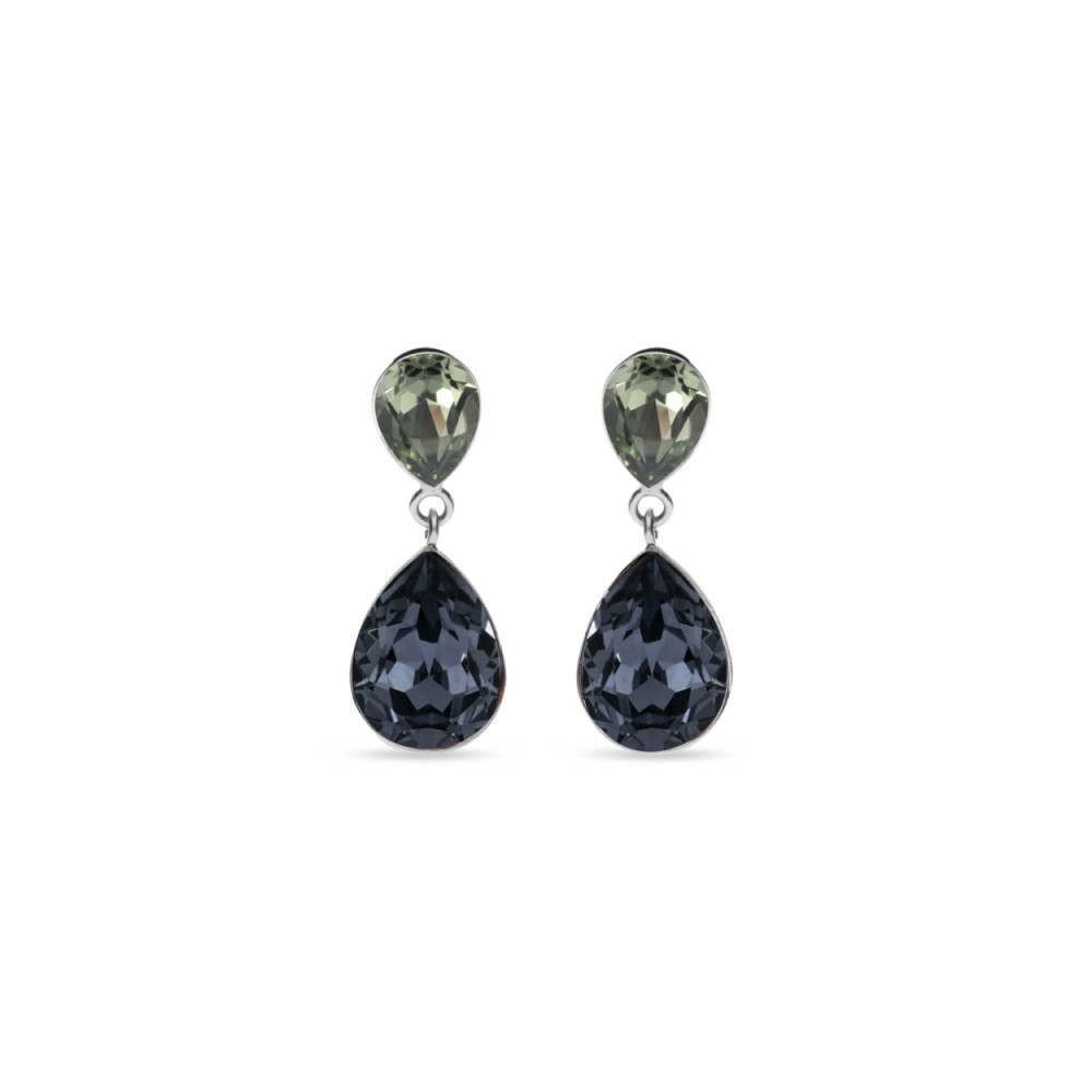 Boucles d'oreille en argent 925 rhodié ornées de cristaux de couleur Black Diamond, Crystal et Graphite.Longueur des boucles d'oreille: 4.5 cm.