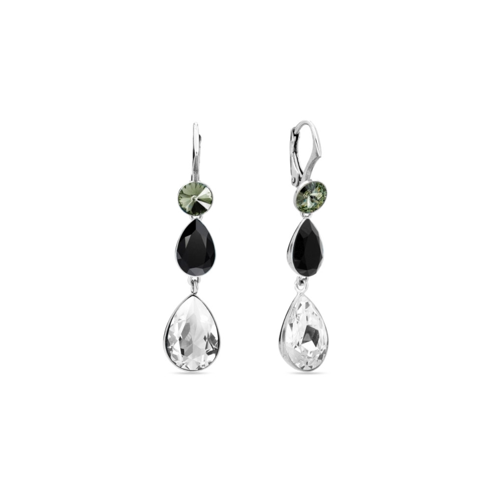 Boucles d'oreille en argent 925 rhodié ornées de cristaux de couleur Aurora Borealis.Longueur des boucles d'oreille: 4 cm.