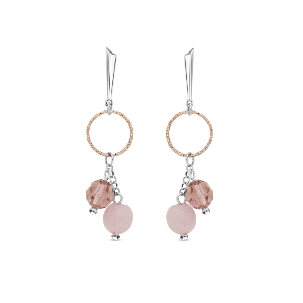 Bracelet en argent sterling 925, cristaux d'Autriche exclusifs de couleur Vintage Rose et pierres naturelles Rose Quartz.Longueur du bracelet : env. 21,5 cm (16 cm + rallonge de 5,5 cm). L'argent est recouvert d'une couche de platine, qui empêche les bijoux de noircir. Longueur pendentif : 1,5 cm.