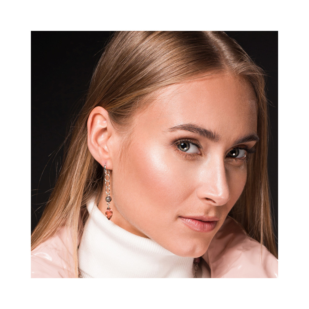 Collier en argent sterling 925, cristaux exclusifs autrichiens de couleur Blush Rose et pierres naturelles Rhodonite.Długość naszyjnika : env. 43,5cm. Longueur pendentif : 2,7 cm.