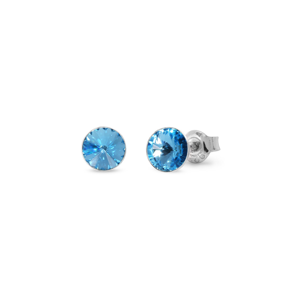 Boucles d'oreille en argent 925 rhodié ornées de cristaux de couleur Aquamarine, Sapphire, Light Sapphire et Montana.Longueur des boucles d'oreille: 7 cm.