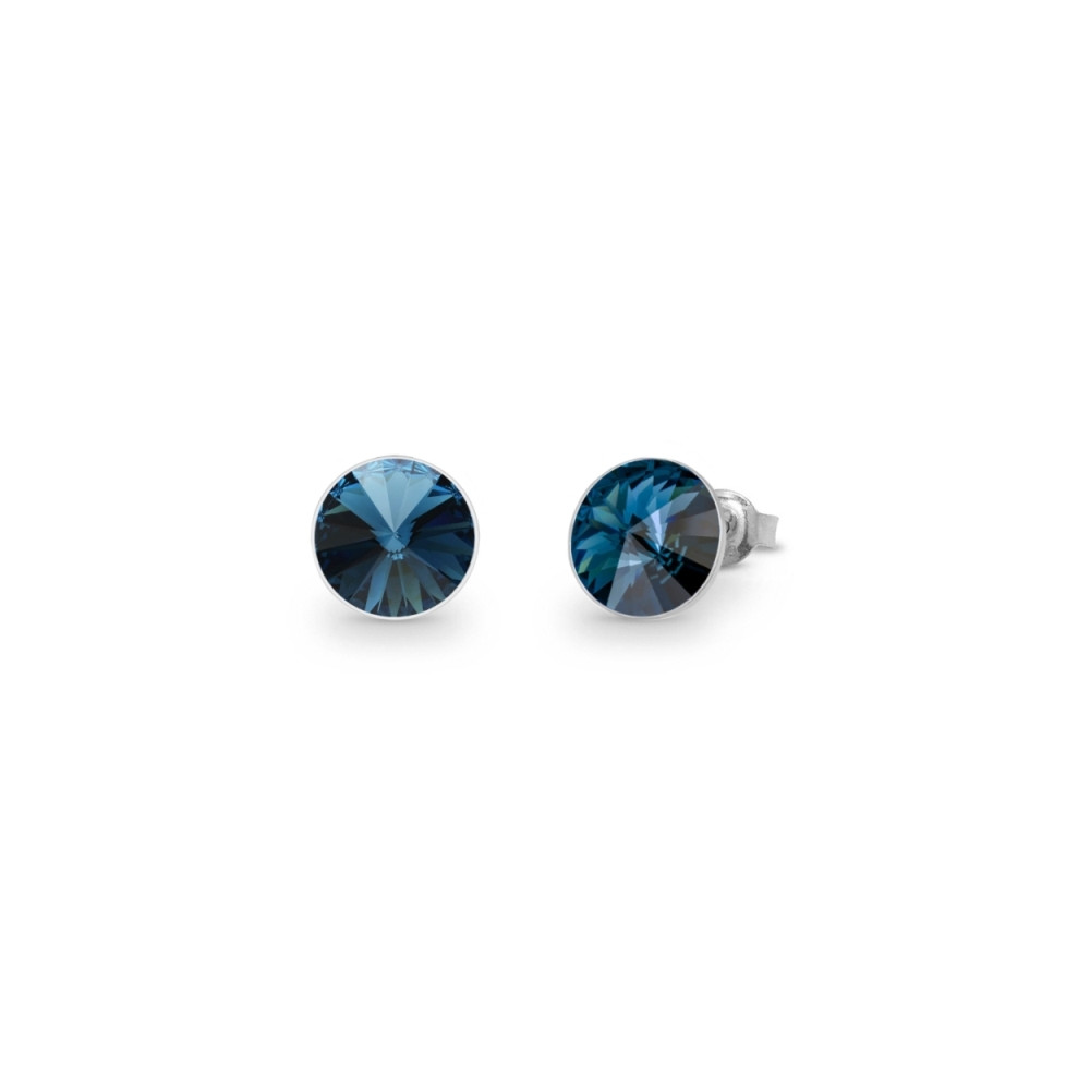 Boucles d'oreille en argent 925 rhodié ornées de cristaux de couleur Montana.Taille des cristaux: environ 0.6 cm.