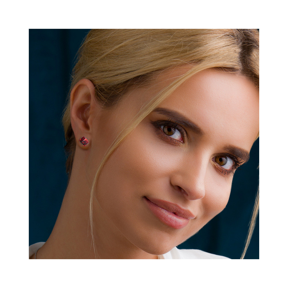 Boucles d'oreille en argent 925 rhodié ornées de cristaux de couleur Light Siam.Taille des cristaux: 0.4 cm.