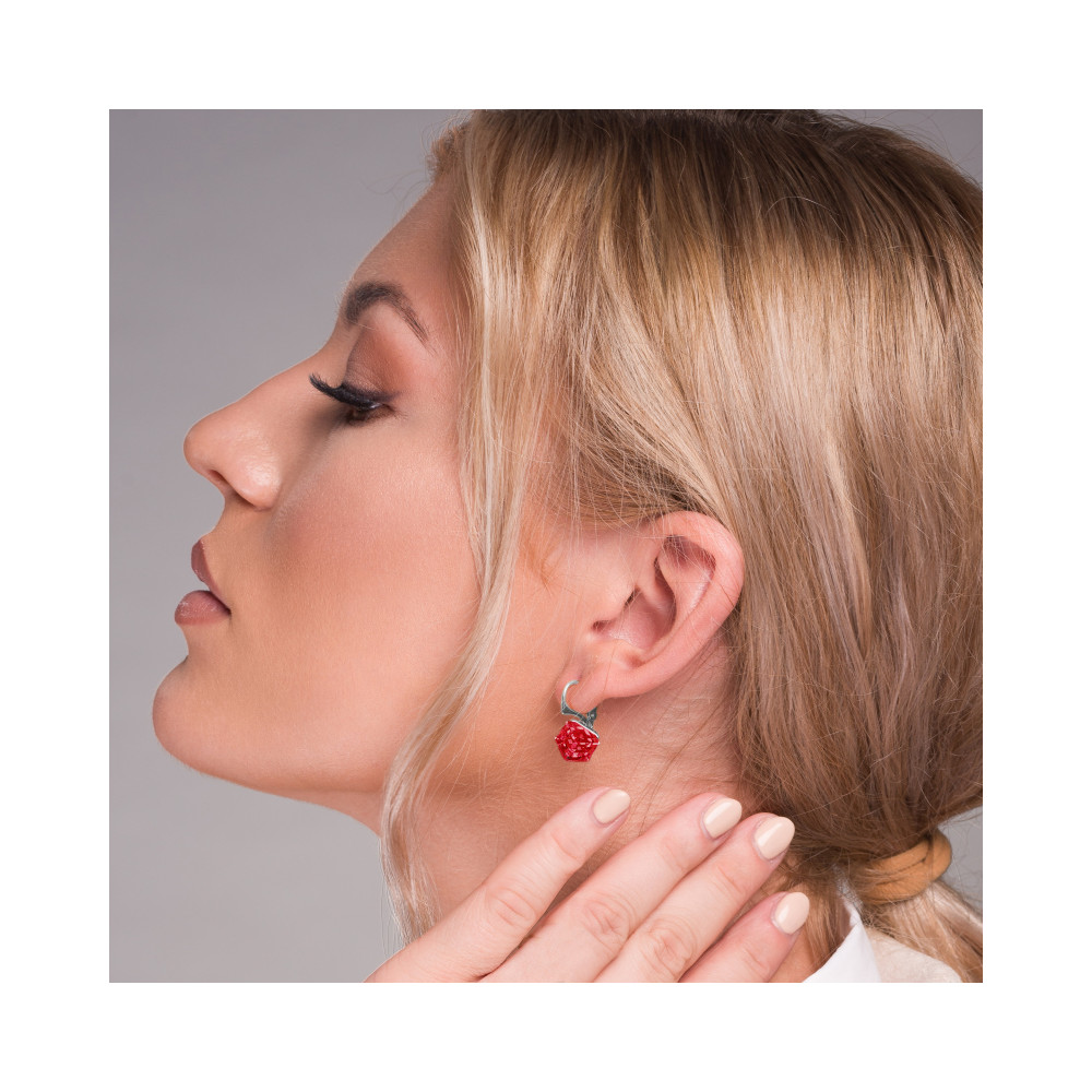 Boucles d'oreille en argent 925 rhodié ornées de cristaux de couleur Light Siam.Taille des cristaux: 0.4 cm.