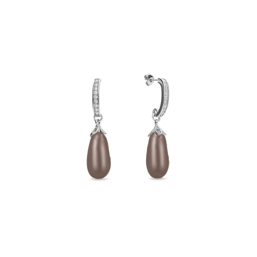 Boucles d'oreille en argent 925 rhodié ornées de perles de cristaux crystals en couleur Bronze Pearl.