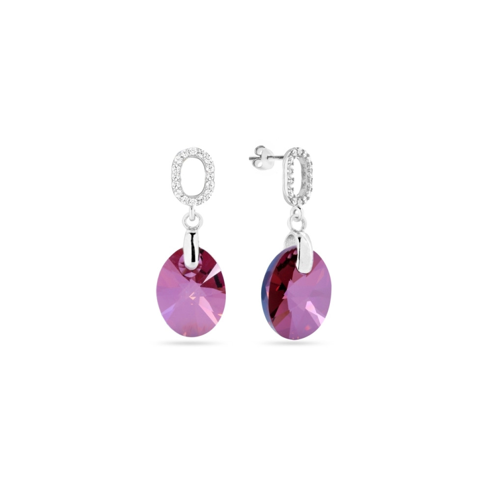 Boucles d'oreille en argent 925 rhodié ornées de cristaux de couleur Lilac Shadow, Amethyst et Violet.Longueur des boucles d'oreille: 4.5 cm.