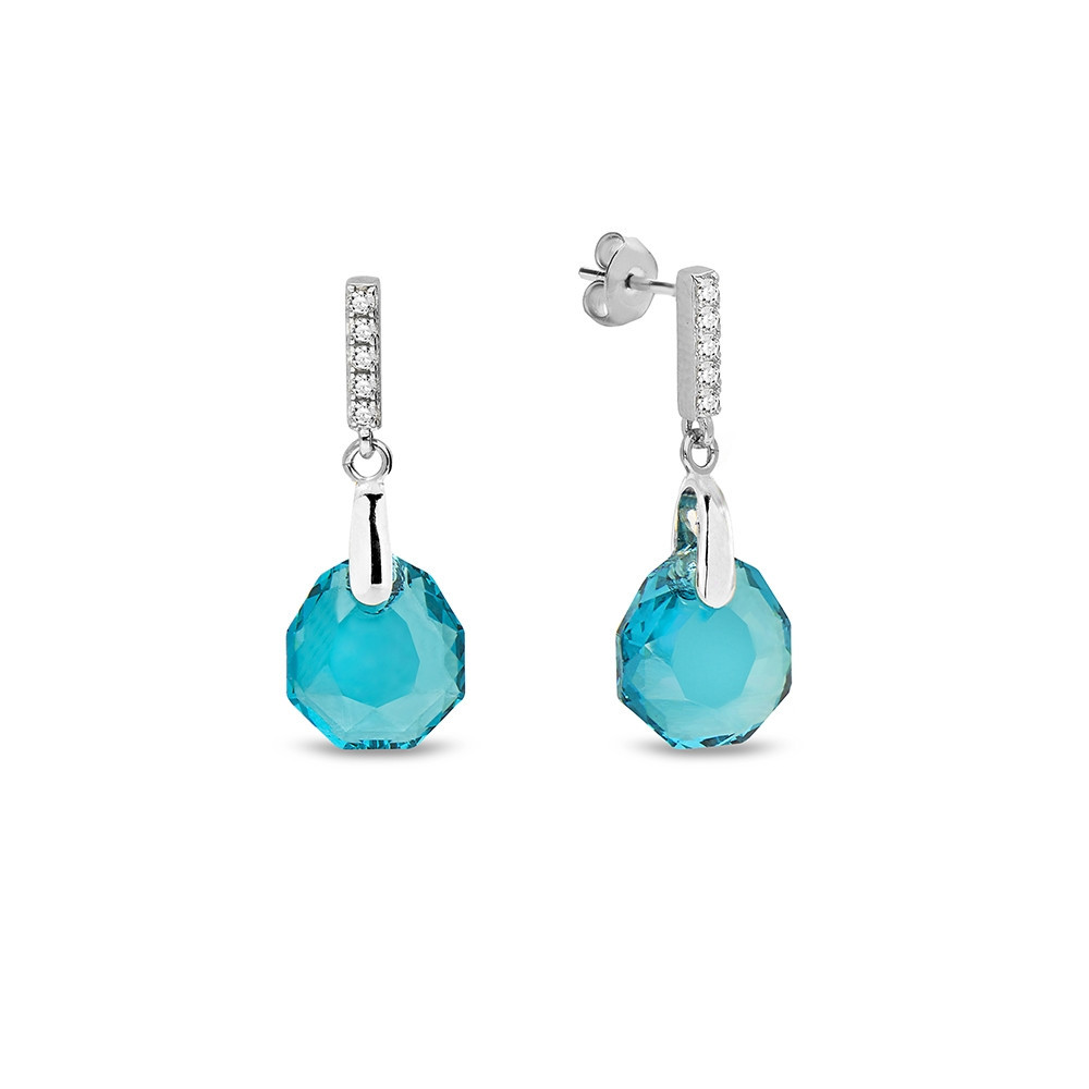 Collier en argent sterling 925 plaqué de platine, zircons et de cristaux autrichiens de couleur Blue Zircon.Longueur de la chaîne: 47 cm (42 cm + rallonge de 5 cm).Longueur du pendentif: 3 cm.Taille du cristal: 1,6 cm.