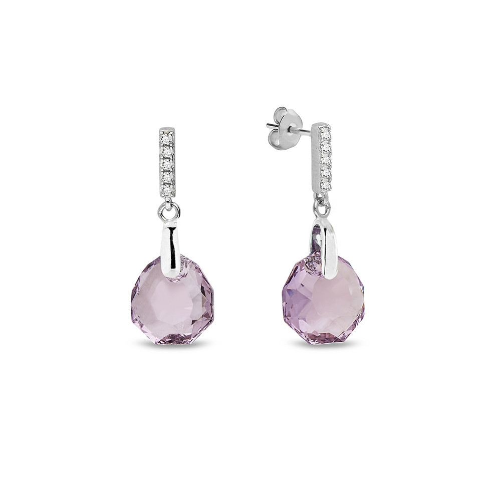 Boucles d'oreilles en argent 925 plaqué de platine, de zircons et de cristaux autrichiens en couleur Blue Zircon.La longueur des boucles d'oreilles: 2,5 cm.Taille du cristal: 1,1 cm.