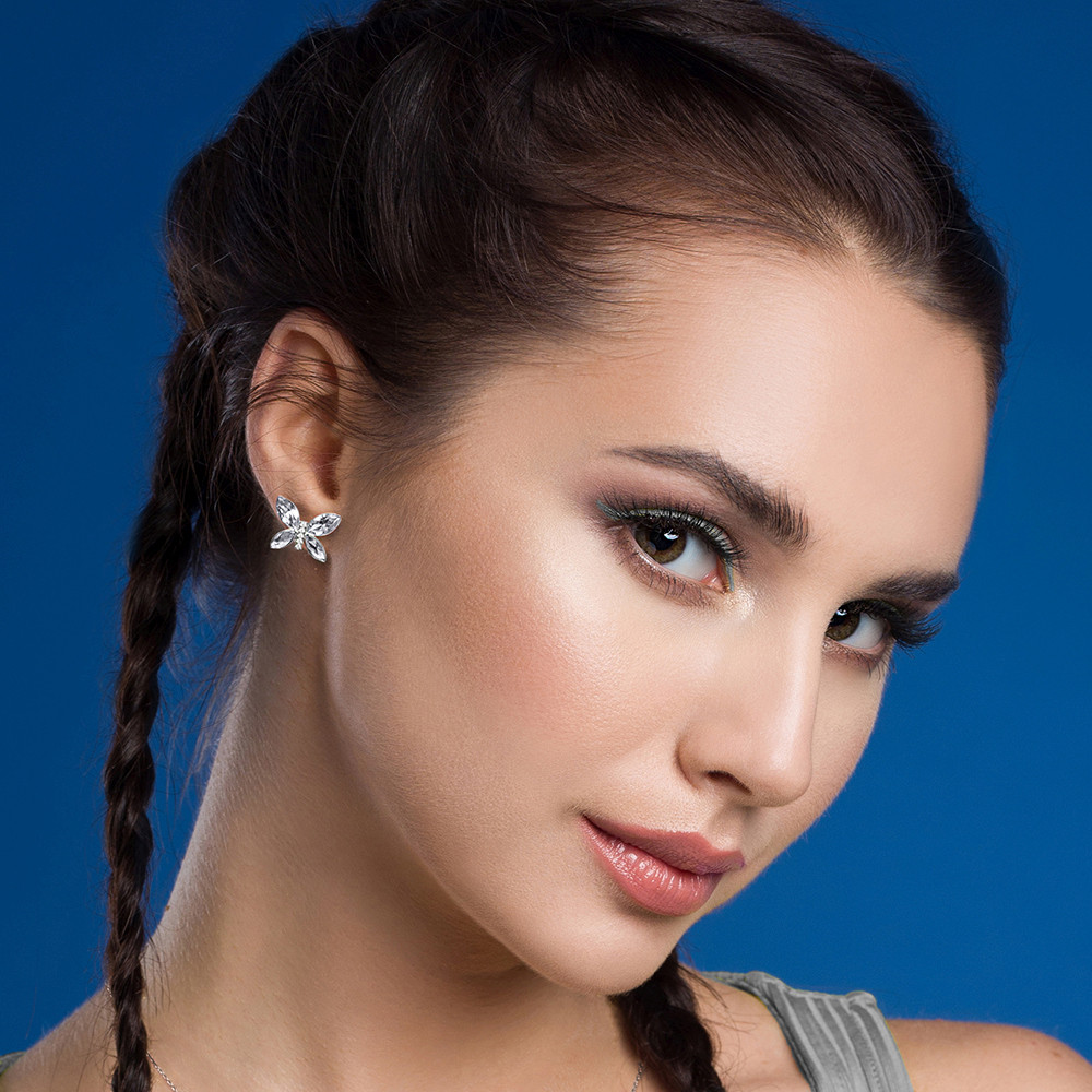Boucles d'oreilles en argent sterling 925 plaqué platine et cristaux autrichiens de couleur Sapphire.La taille des boucles d'oreilles: 1,4 cm.