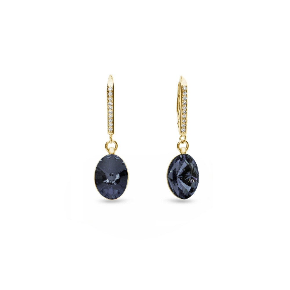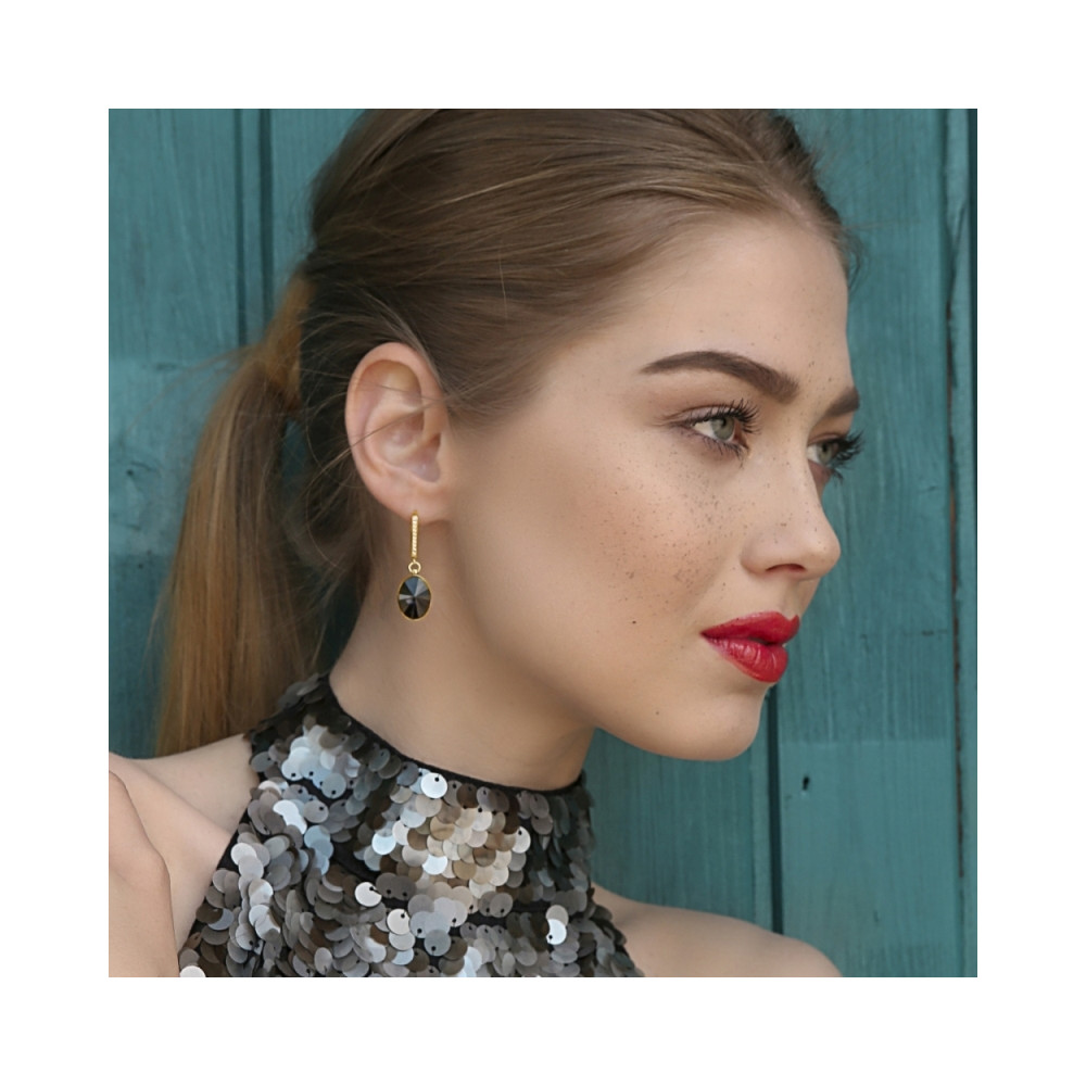 Collier plaqué or sur argent 925 orné de cristaux de couleur Graphite.Longueur de chaîne: 47 cm (42 cm + 5 cm extension). Longueur du pendentif: 2.4 cm.