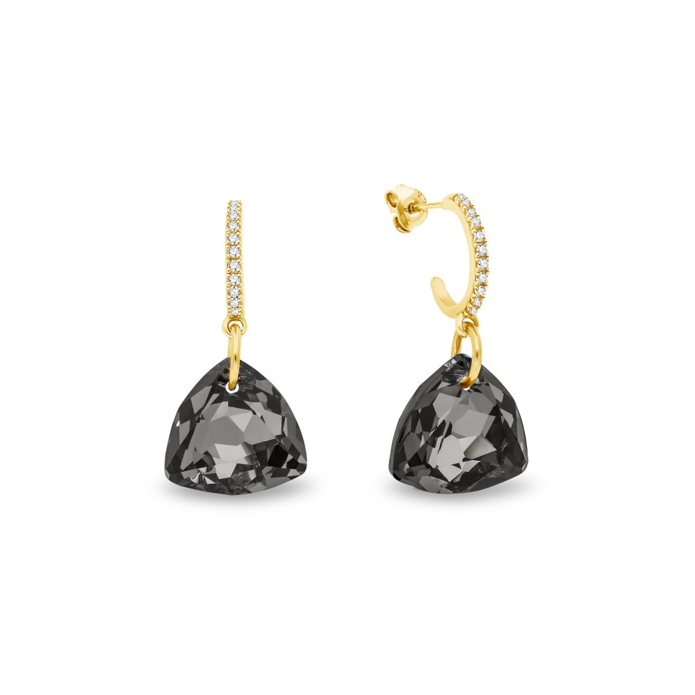 Collier en argent 925 plaqué or et cristaux autrichiens de couleur Silver Night.Longueur de la chaîne: 47 cm (42,5 cm + 4,5 cm d'extension).Longueur du pendentif: 2 cm.Taille du cristal: 1,4 cm.