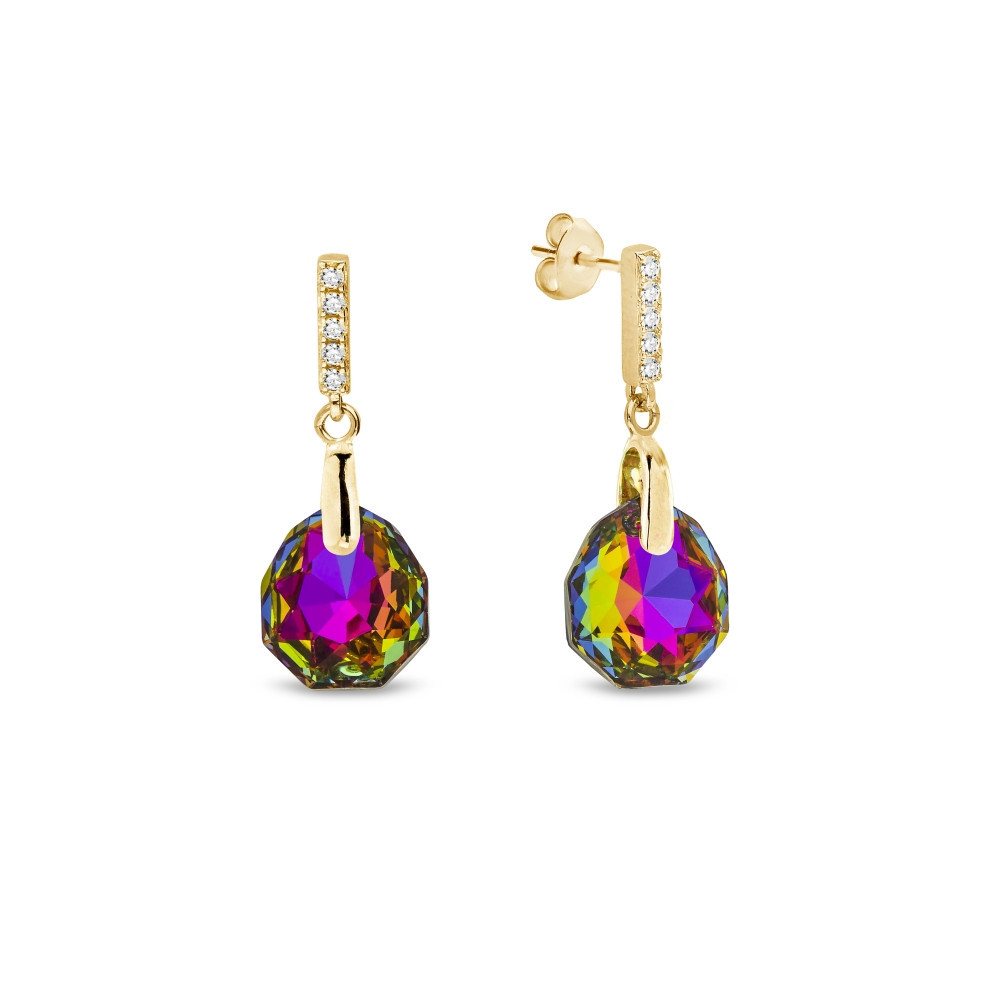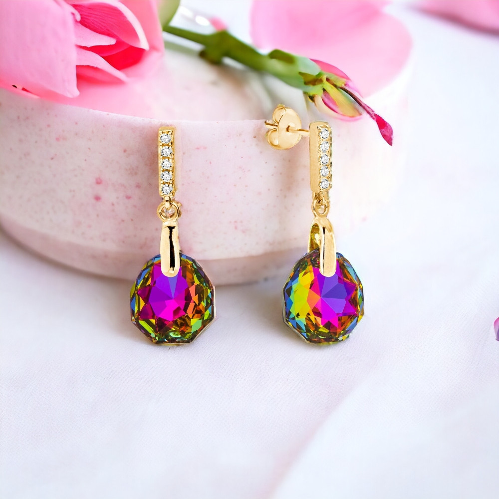 Boucles d'oreilles en argent sterling 925 plaqué or et cristaux autrichiens exclusifs de couleur Vitrail Medium.Longueur des boucles d'oreilles : 2,8 cm.