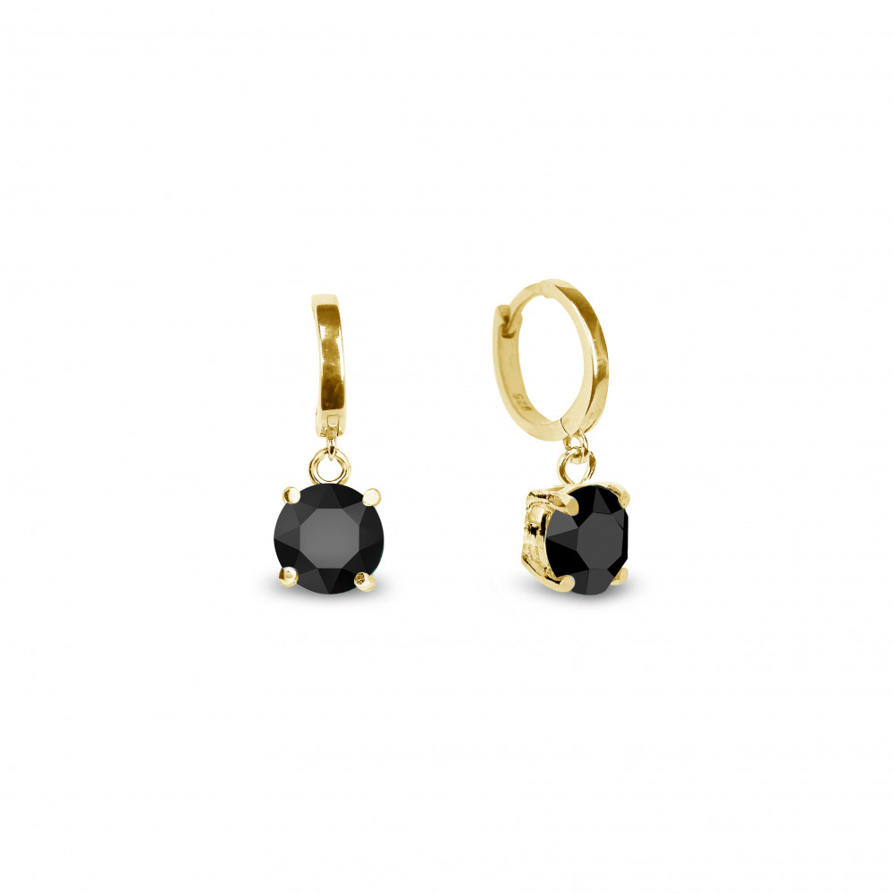 Collier en argent sterling 925 plaqué or et cristaux autrichiens de couleur Jet.Longueur de la chaîne: 47 cm (42 cm + rallonge de 5 cm).Longueur du pendentif: 1,4 cm.Taille du cristal: 0,8 cm.