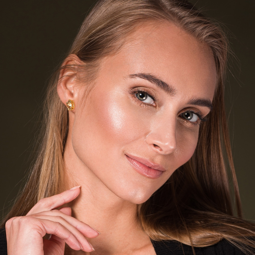 Boucles d'oreilles en argent sterling 925 plaqué or et cristaux autrichiens de couleur Golden Shadow.Taille du cristal: 1 cm.