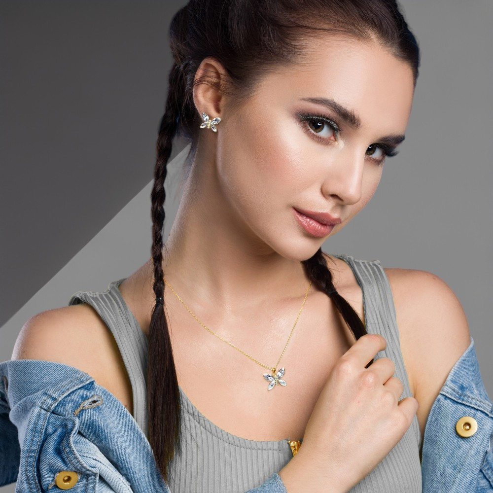 Collier en argent sterling 925 plaqué or et cristaux autrichiens de couleur Crystal.Longueur de la chaîne: 47 cm (42 cm + rallonge de 5 cm).Longueur du pendentif: 1,5 cm.