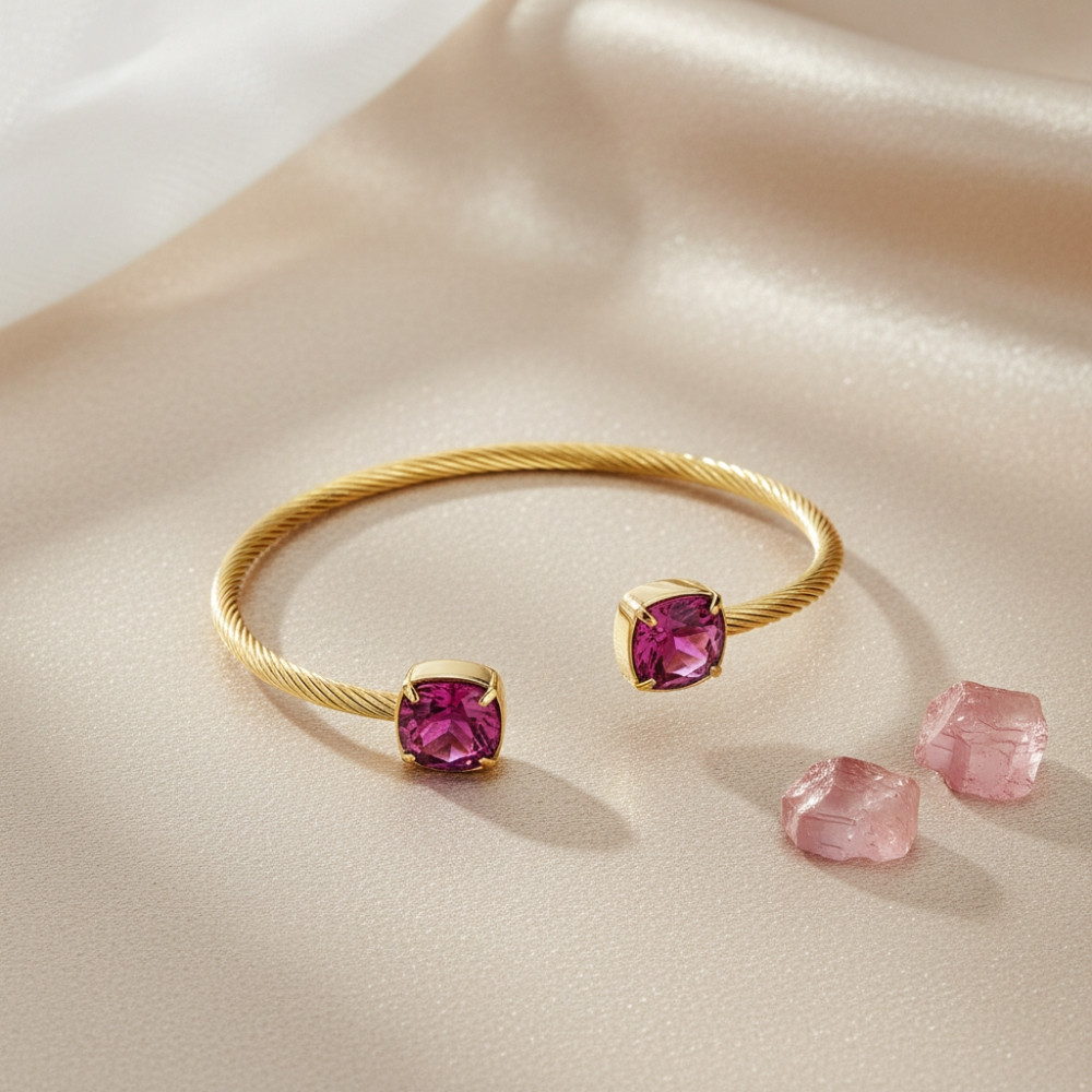 Bracelet MIRAGE en acier inoxydable plaqué or avec cristal rose | SPARK