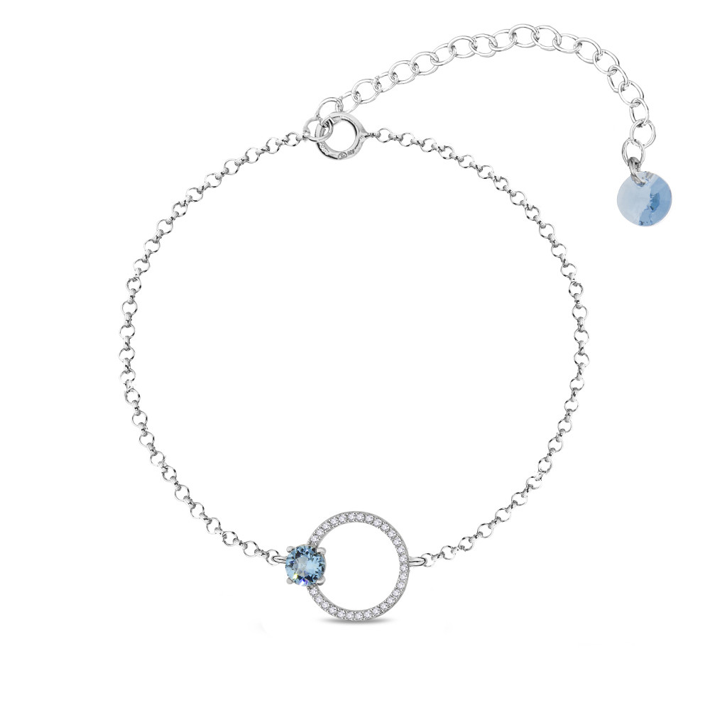 Cristal central de 6 mm de diamètre, de couleur bleu clair, comme la pierre précieuse aigue-marine.