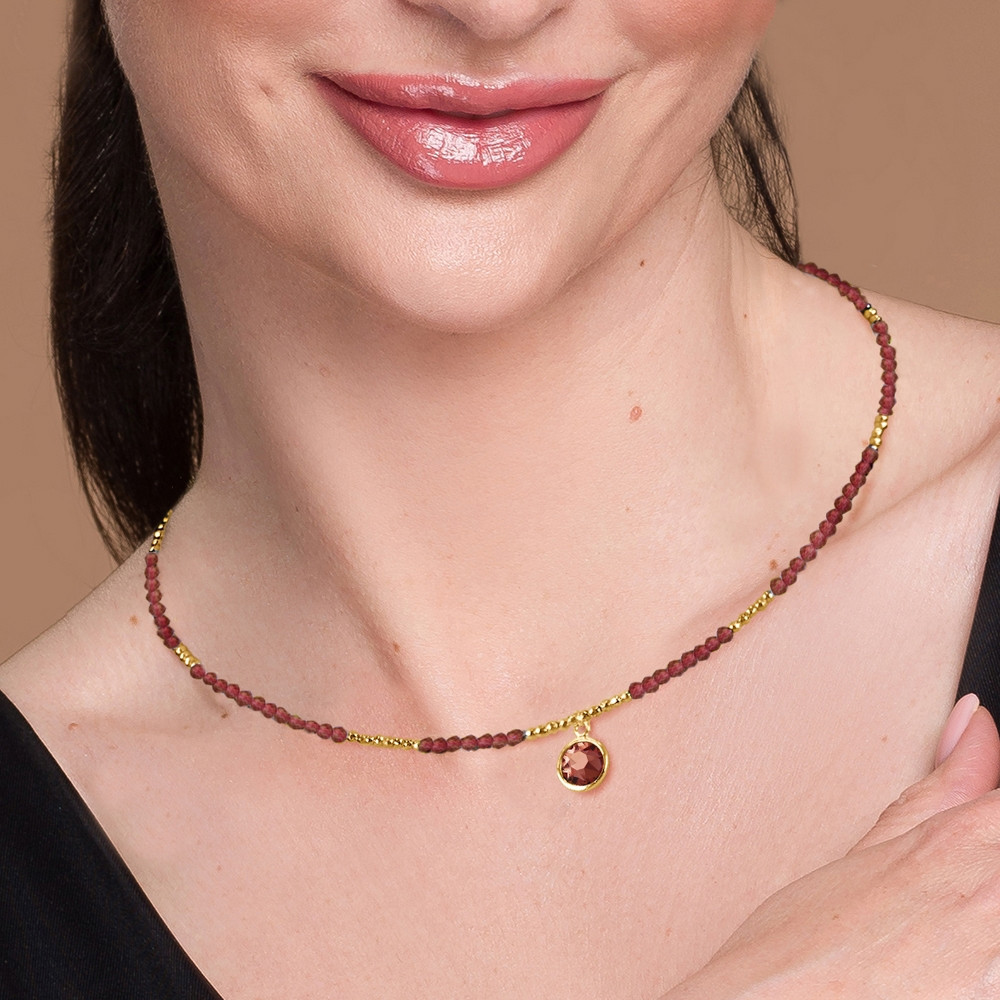 Collier en argent sterling 925 plaqué or, hématites, grenats et cristaux autrichiens de couleur Blush Rose.