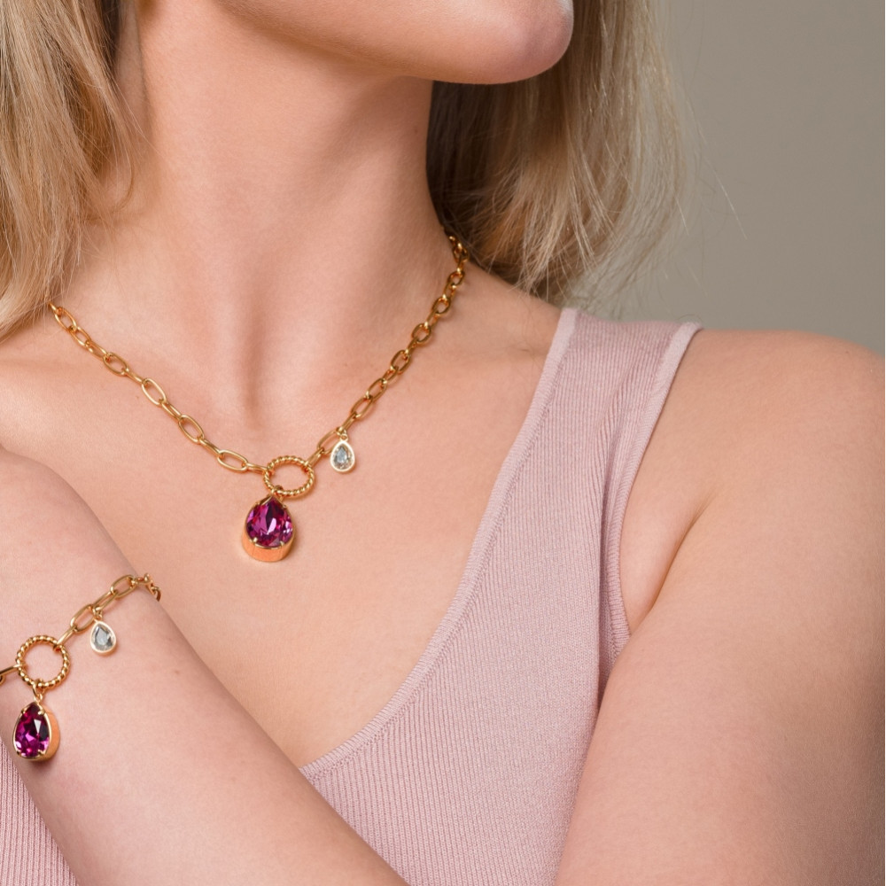 Bracelet Illusion acier inoxydable plaqué or avec cristaux Swarovski® roses | SPARK