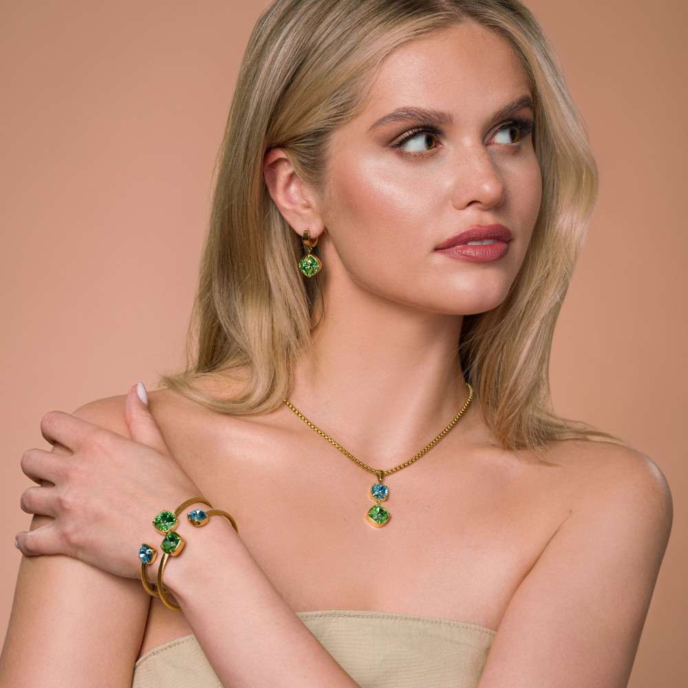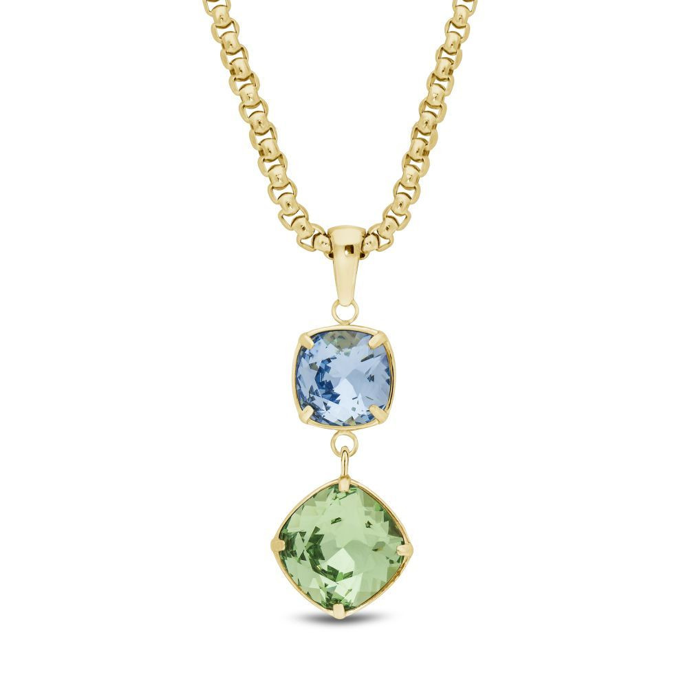 Collier MIRAGE en acier inoxydable plaqué or et cristaux verts et bleus | SPARK