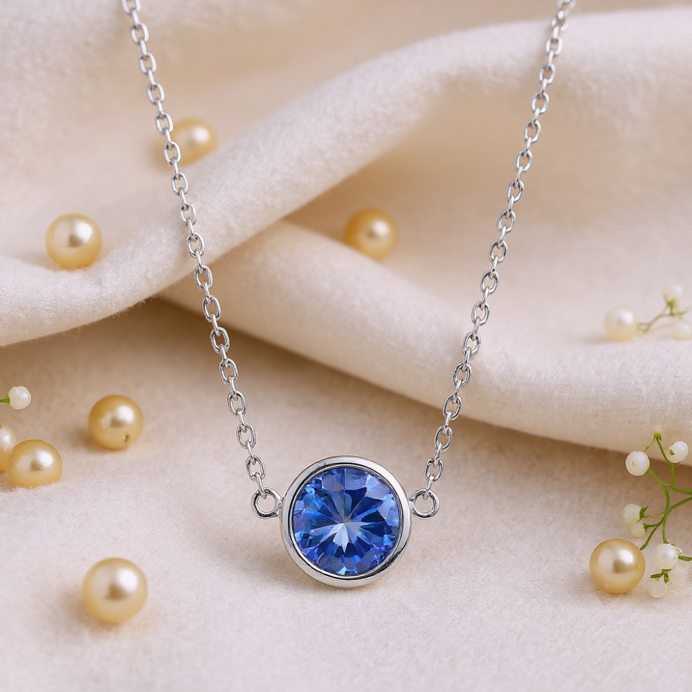 Collier SCINTILLE en acier inoxydable et cristal bleu zircon Swarovski® — minimaliste & lumineux
