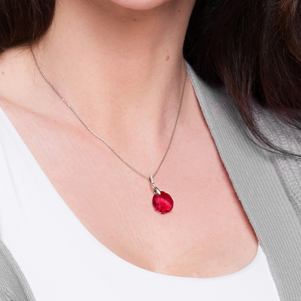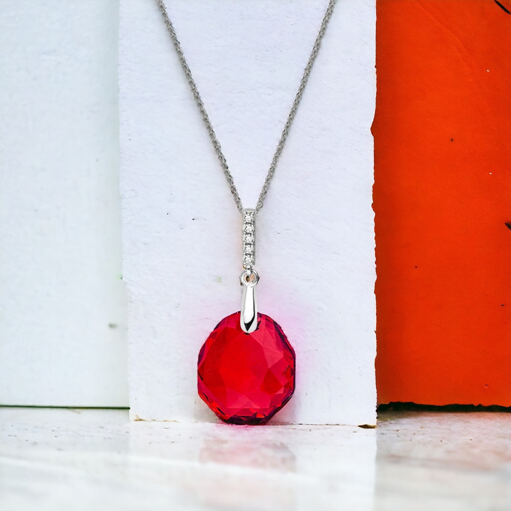 Boucles d'oreilles en argent 925 plaqué de platine, de zircons et de cristaux autrichiens en couleur Scarlet.La longueur des boucles d'oreilles: 2,5 cm.Taille du cristal: 1,1 cm.