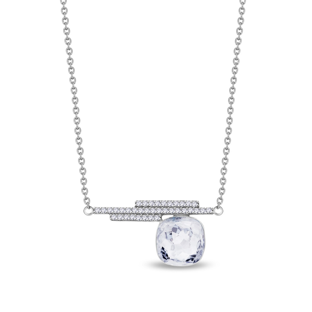 La combinaison du cristal carré et des trois lignes de zircones crée un équilibre harmonieux entre design contemporain et glamour intemporel. Qu'il soit porté comme point central d'une tenue formelle ou pour ajouter une touche de luxe à une tenue de tous les jours, ce collier laissera certainement une impression durable, ce qui en fera un ajout précieux à toute collection de bijoux.