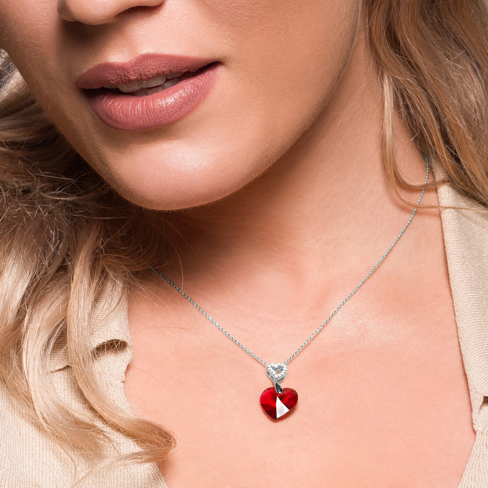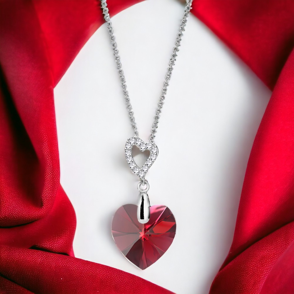 Collier en argent 925 plaqué de platine orné de cristaux de couleur Scarlet.