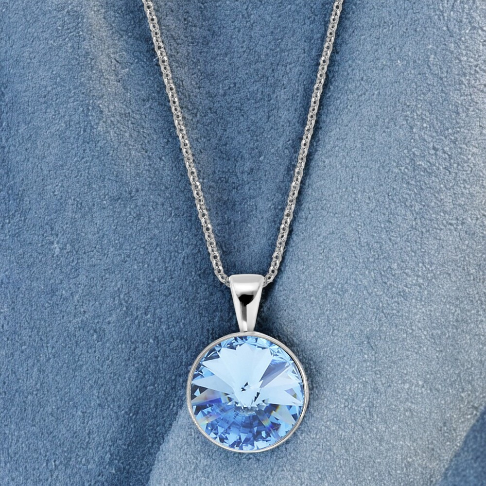 La pierre qui orne le collier est un cristal autrichien de couleur aigue-marine.