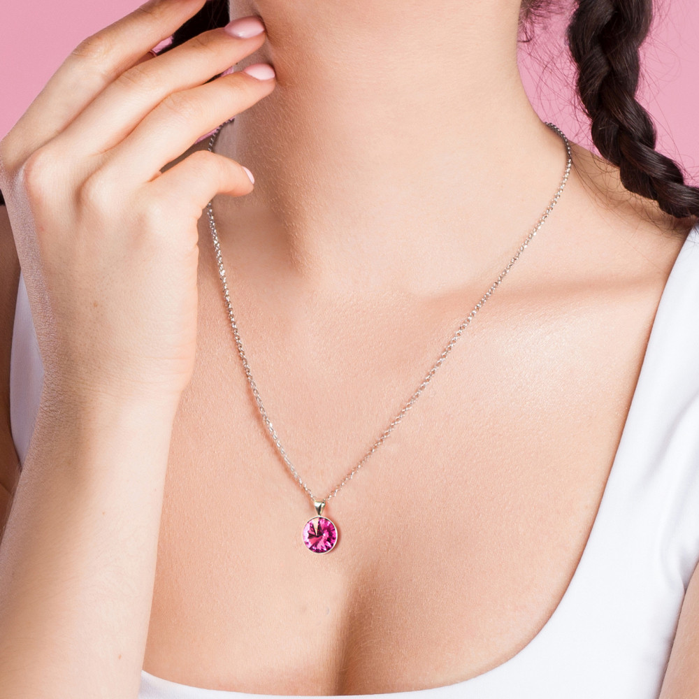 Collier en Argent avec un Cristal Rose Rond – Subtilité et Style en Un