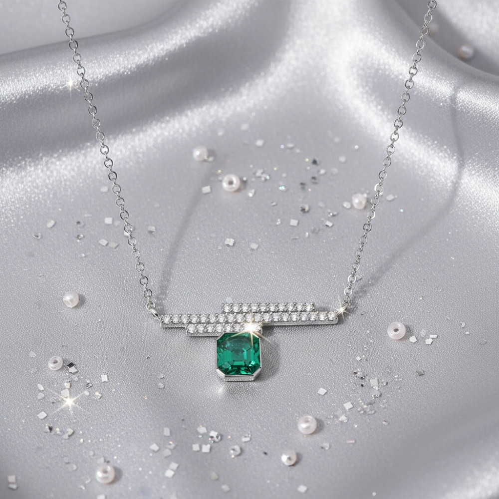 Boucles d'oreilles GEOMETRIC en argent avec cristaux verts | SPARK