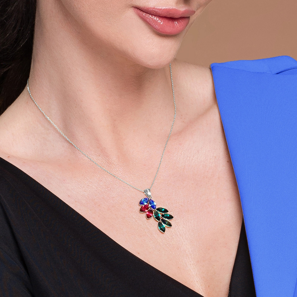 Collier en argent 925 plaqué or et cristaux autrichiens en couleurs Jet, Silver Night et Crystal.Longueur de la chaîne: 47 cm (42 cm + 5 cm d'extension).Longueur du pendentif: 4 cm.Taille du cristal: 1,4 cm.
