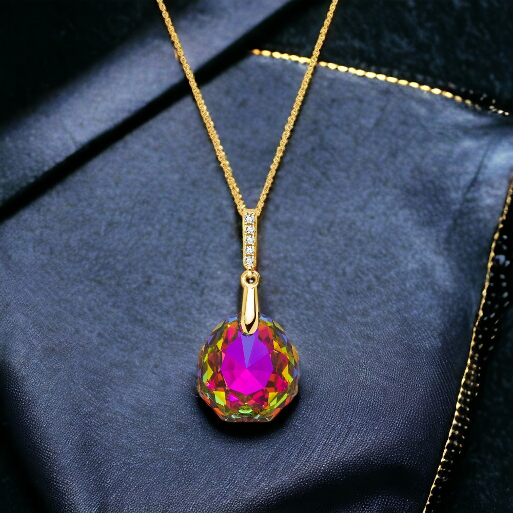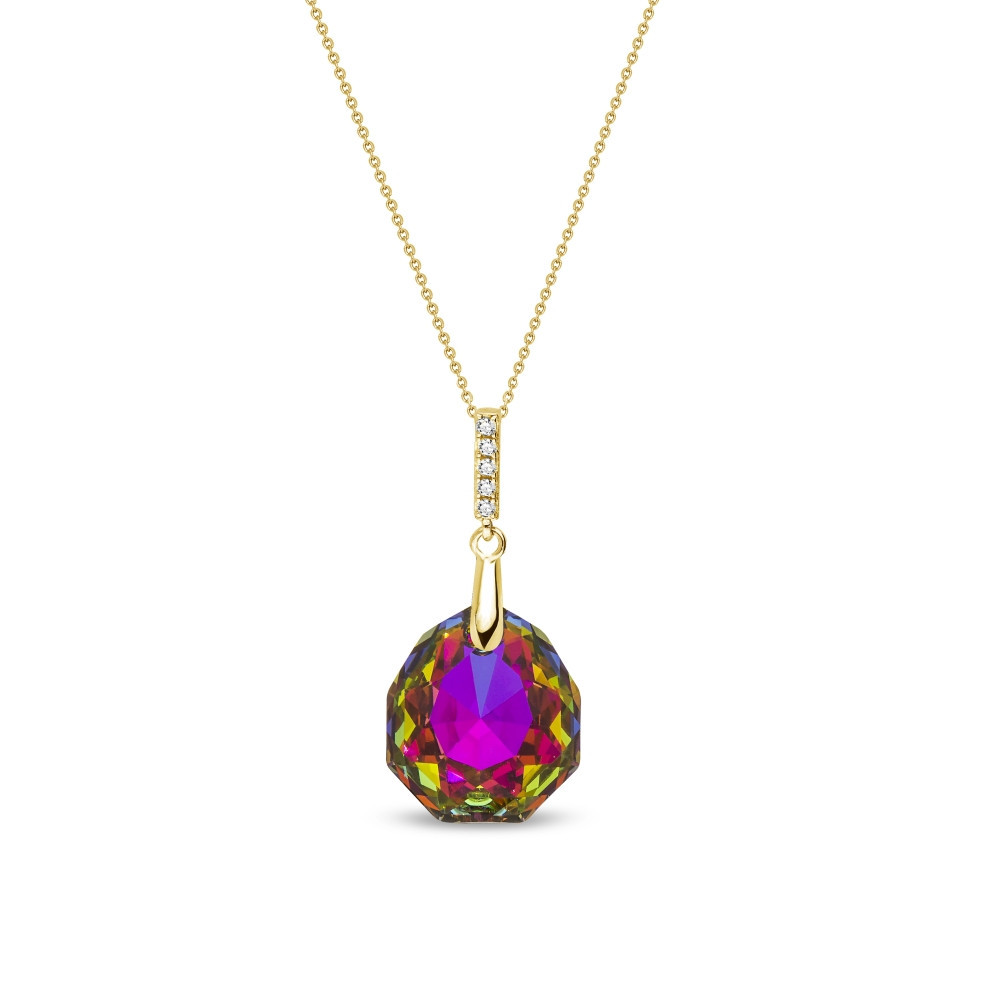 Collier plaqué or sur argent 925 orné de cristaux de couleur Vitrail Medium.Longueur de chaîne: 47 cm (42 cm + 5 cm extension). Longueur du pendentif: 4 cm.