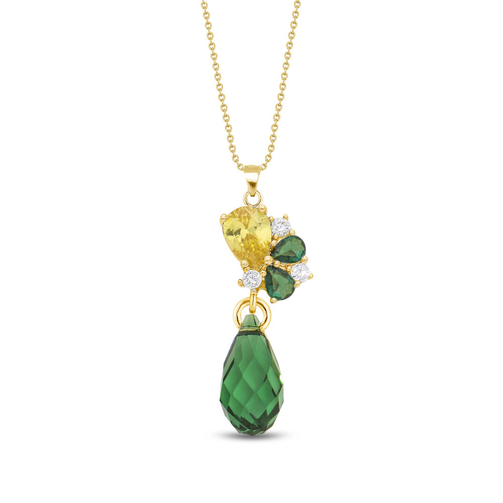 Collier BLATTER en argent plaqué or avec cristal vert | SPARK