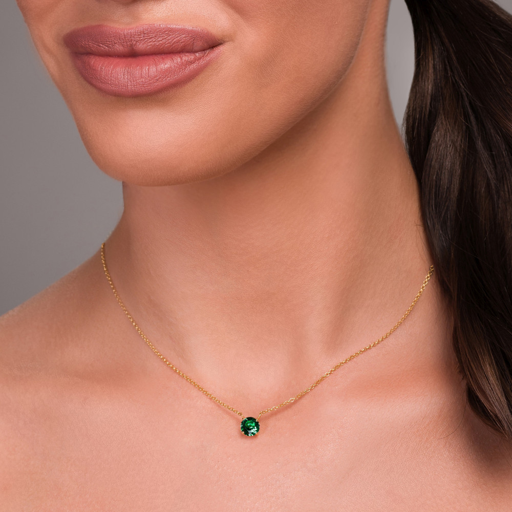 Le collier BRILLANT en argent plaqué or incarne l’élégance intemporelle et la lumière pure. En son centre, un cristal vert Swarovski® de 6 mm capte la lumière avec une brillance éclatante, évoquant la finesse d’un diamant et la sophistication discrète.