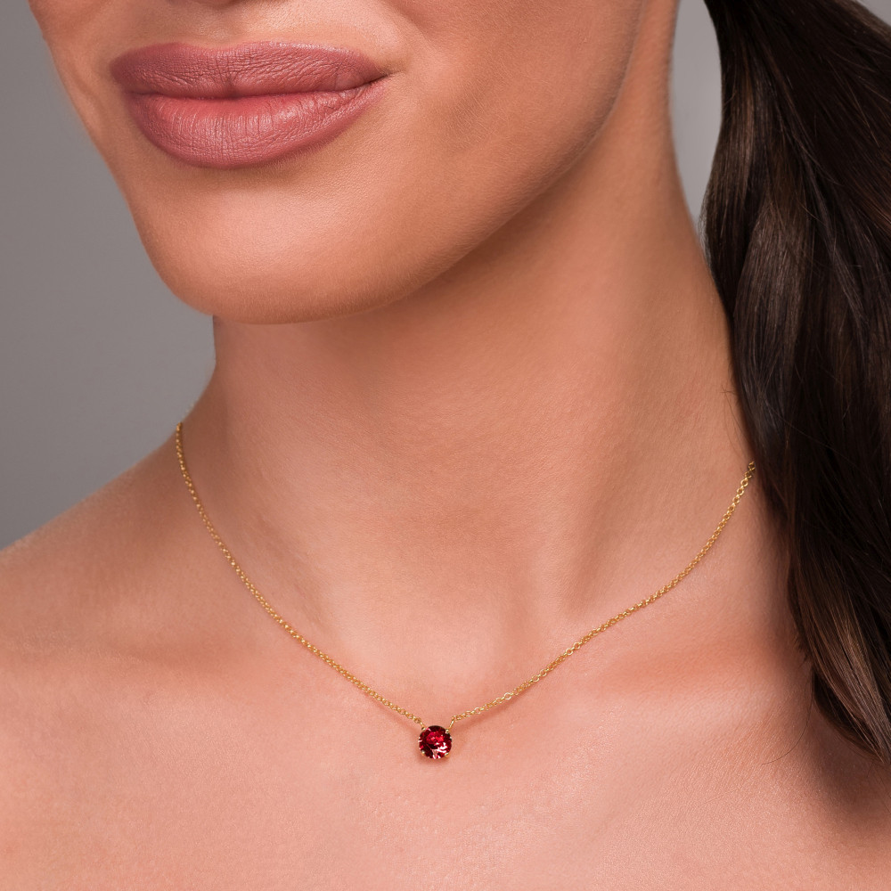 Collier BRILLANT en argent plaqué or avec cristal rouge| SPARK