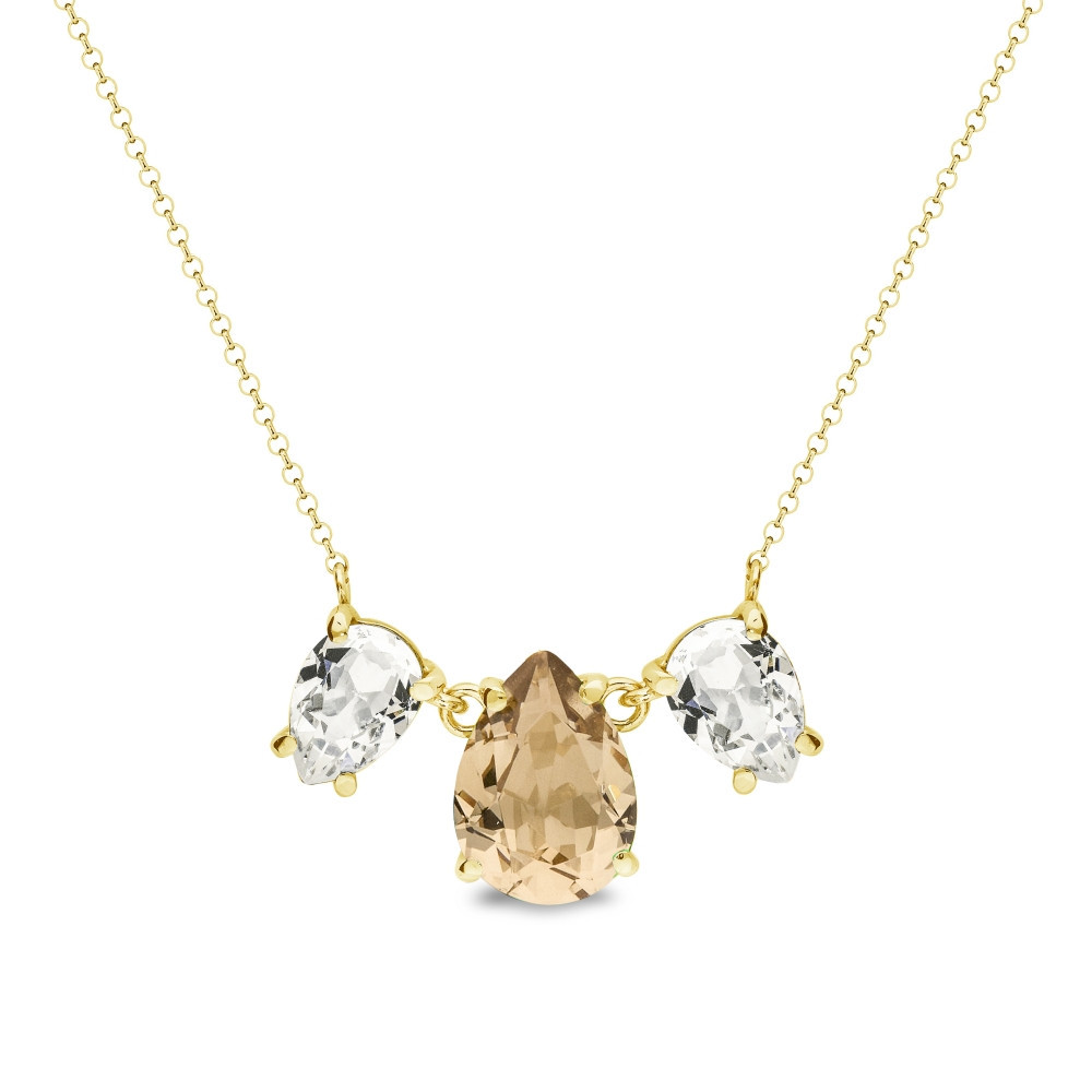 Collier en argent sterling 925 plaqué or et cristaux autrichiens de couleurs Golden Shadow et Cristal.Longueur du collier: 47 cm (42 cm + 5 cm d'extension).Taille des cristaux: 1,4 cm et 1 cm.