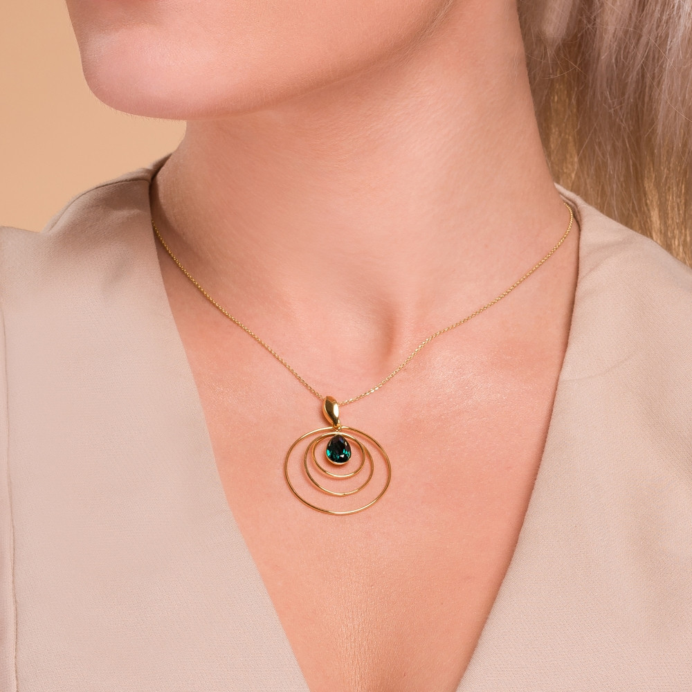 Le collier a également un cristal qui crée les rayons du soleil reflétant la lumière sous différents angles. Le tout est suspendu à une délicate chaîne, qui souligne subtilement l'élégance de ce modèle.