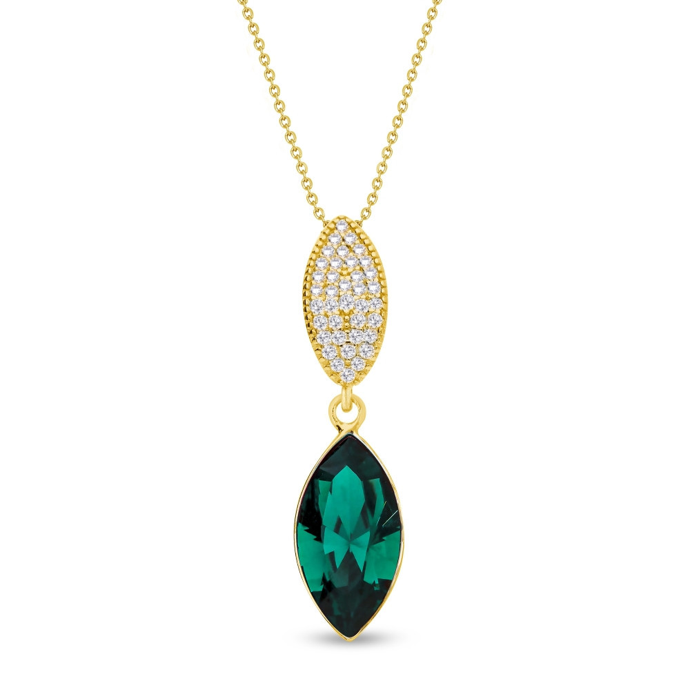 Collier plaqué or sur argent 925 orné de cristaux de couleur Emerald.Longueur de chaîne: 45 cm (40 cm + 5 cm extension). Longueur du pendentif: 1.3 cm.