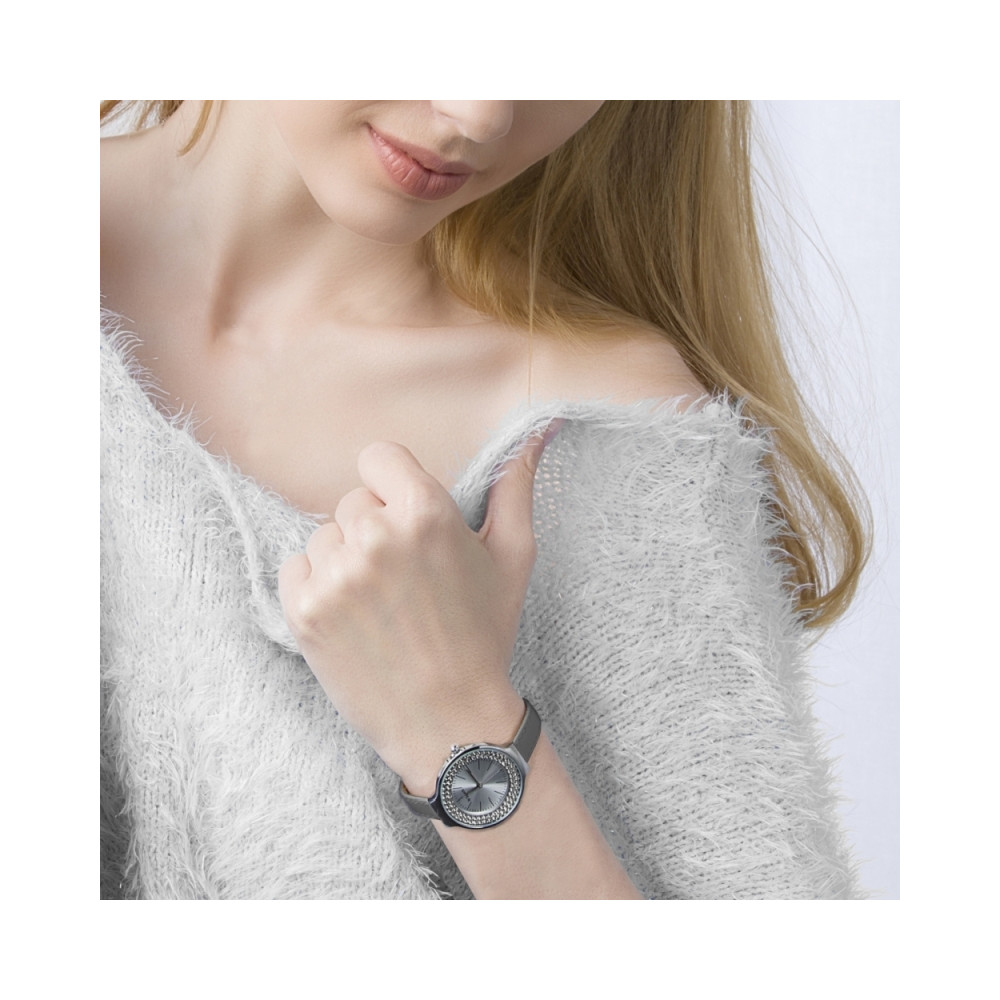 Collier en argent 925 rhodié orné de cristaux de couleur Silver Night et Crystal.Longueur de chaîne: 47 cm (42 cm + 5 cm extension). Longueur du pendentif: 4.2 cm.