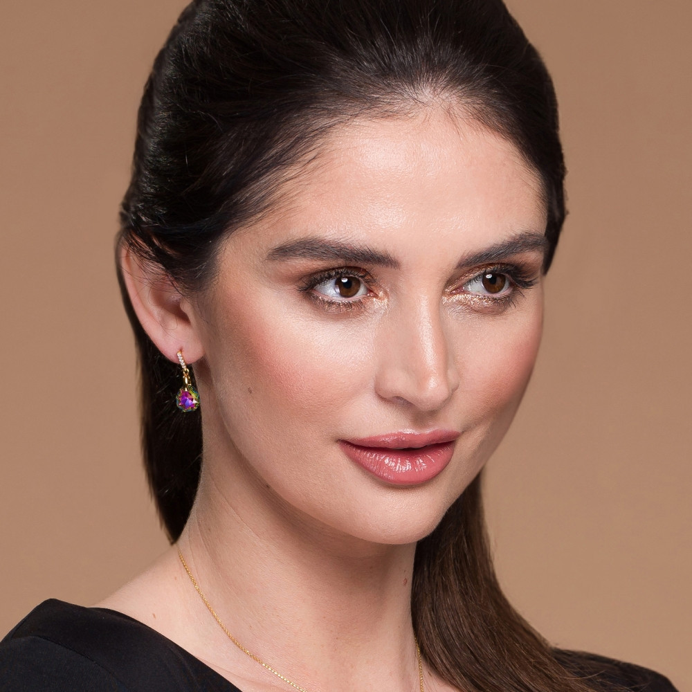 Kolczyki wykonane z pozłacanego srebra próby 925 oraz ekskluzywnych kryształów w kolorze Vitrail Medium.Długość kolczyków: 2,8 cm.