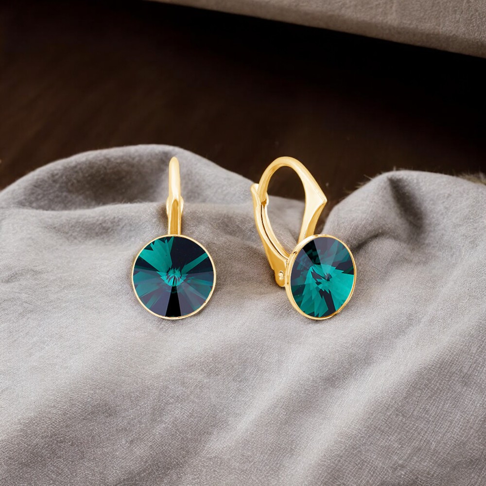 Kolczyki Spark Firefly wykonane są ze srebra 925 pokrytego warstwą złota oraz austriackich kryształów w zielonym kolorze - Emerald.